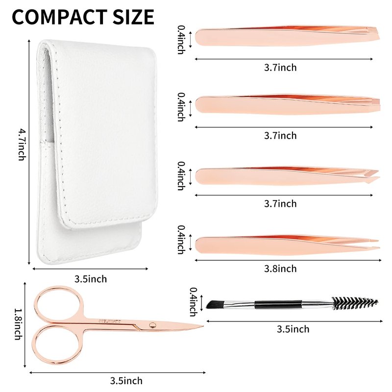 - 【Quality Tweezers Gift】The lightweight eyebrow scissors,brush and tweezers set comes with a delicate leather bag, which is very convenient for daily storage and carrying. The unique rose gold matches the leather case of the same color. Say goodbye to nasty stray hair with these precision tweezers. Similarly, the eyebrow tweezers kit is also a good gift for your wife/girlfriend/mother/daughter.