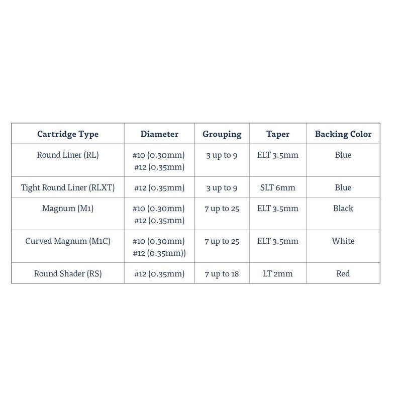 Needle Type: Round Liner (RL), Tight Round Liner (RLXT), Round Shader (RS), Magnum (M1), Curved Magnum (M1C) )
