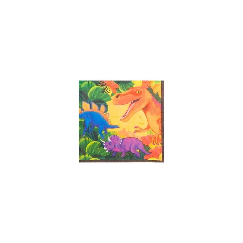 - Luncheon napkins with colorful dinosaurs in a prehistoric land