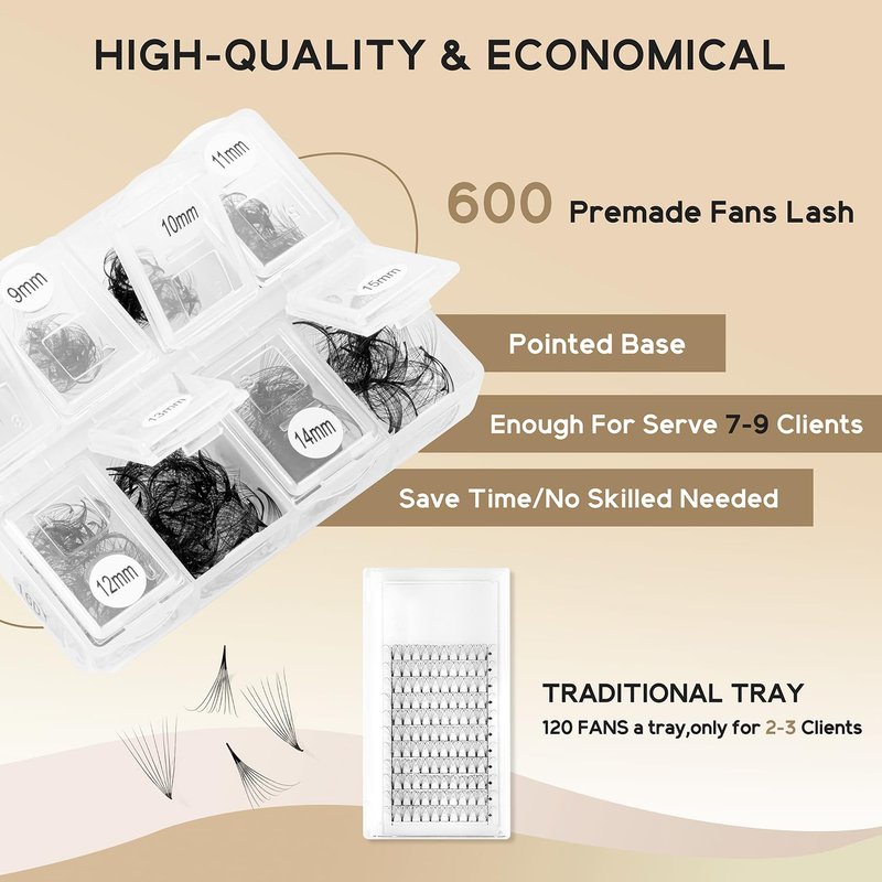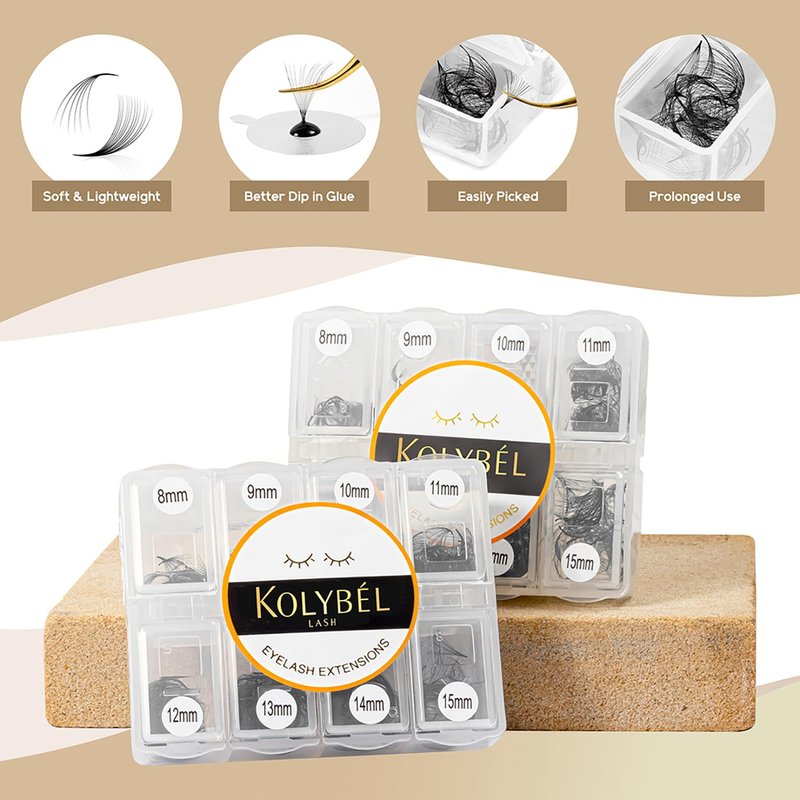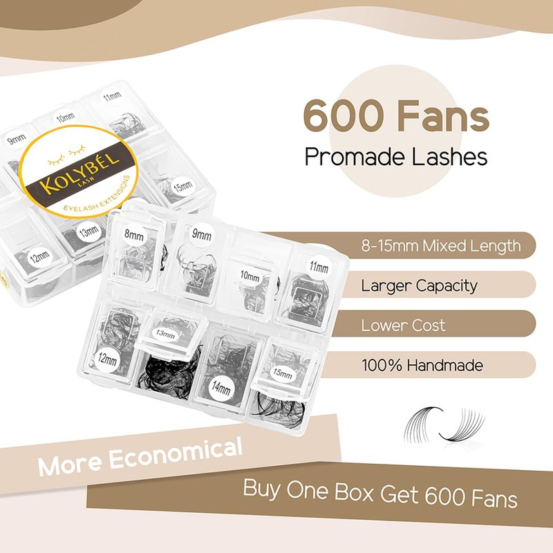 - COST EFFECTIVENESS:Kolybel loose fans 600 fans/ box, 8-15mm Mixed Length. premade fans eyelash extensions mixed tray are more affordable and durable. Meet your needs in length, curl and thickness, and help you save money and time on choosing eyelashes.