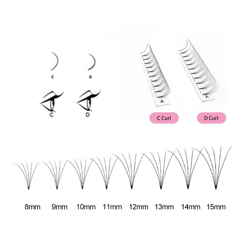 Premade Volume Lashes 6D-C-0.07-11mm, Premade Fans Eyelash Extensions 0.07&0.10 Volume Lash Extensions C D curl 8-15 mm Length Pre made Lash Fans
