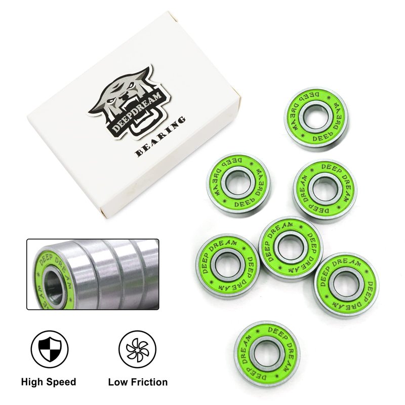 - Smooth and Fast Pre Lubricated Bearings:Skateboard Bearings contain a super fast, high speed lube that reduces friction to give riders a super smooth and fast ride.