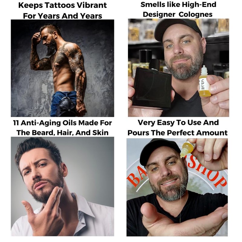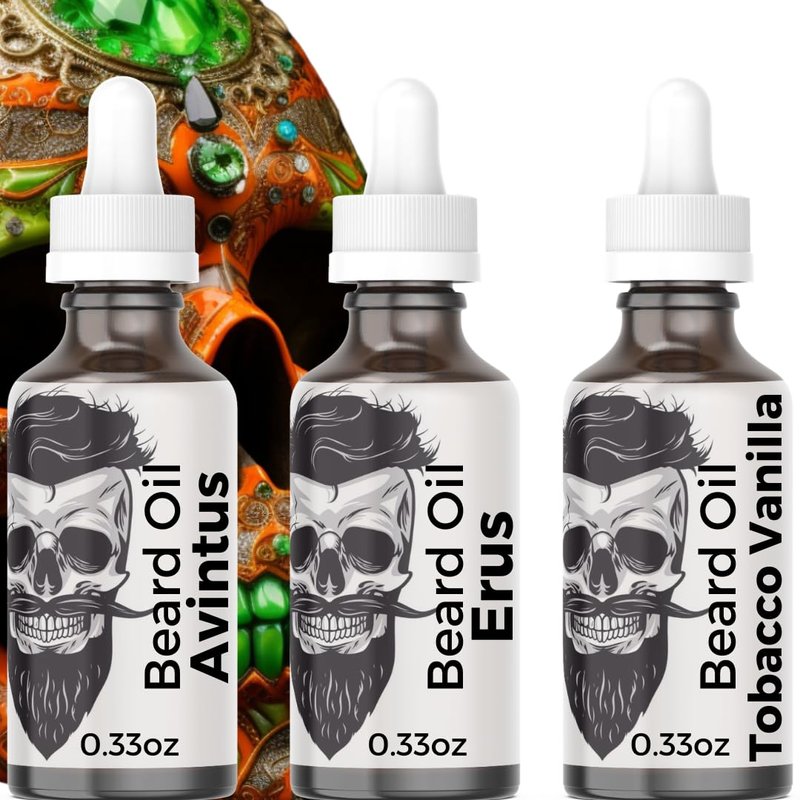 Premium Anti-Aging Beard Oil for Men: Plant Retinol Fights Aging & Wrinkles| Castor Oil Boost Growth, Irresistible Scent | 11 Natural Oils (Avntus,Erus,Tobacco Vanilla) 3-0.33oz=1oz Sample Pack