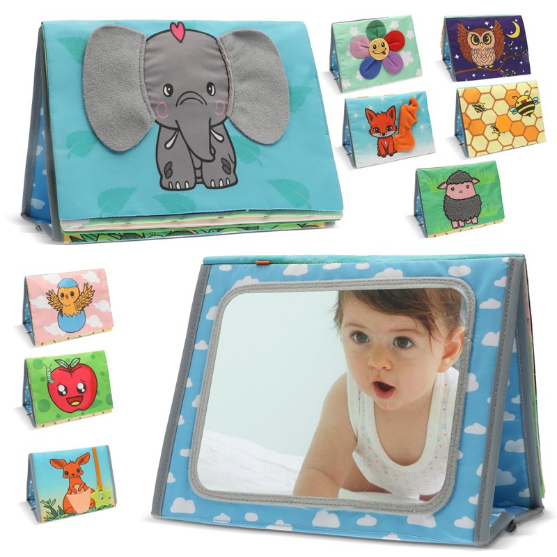 - Introducing our innovative Baby Mirror Tummy Time – a delightful fusion of cloth book and baby mirror, promoting interactive play and enhancing mirror for babies infant touch development. Features high contrast baby toys for newborn designs, perfect for infants. Get your baby off to a quick start with engaging tummy time toys fun!