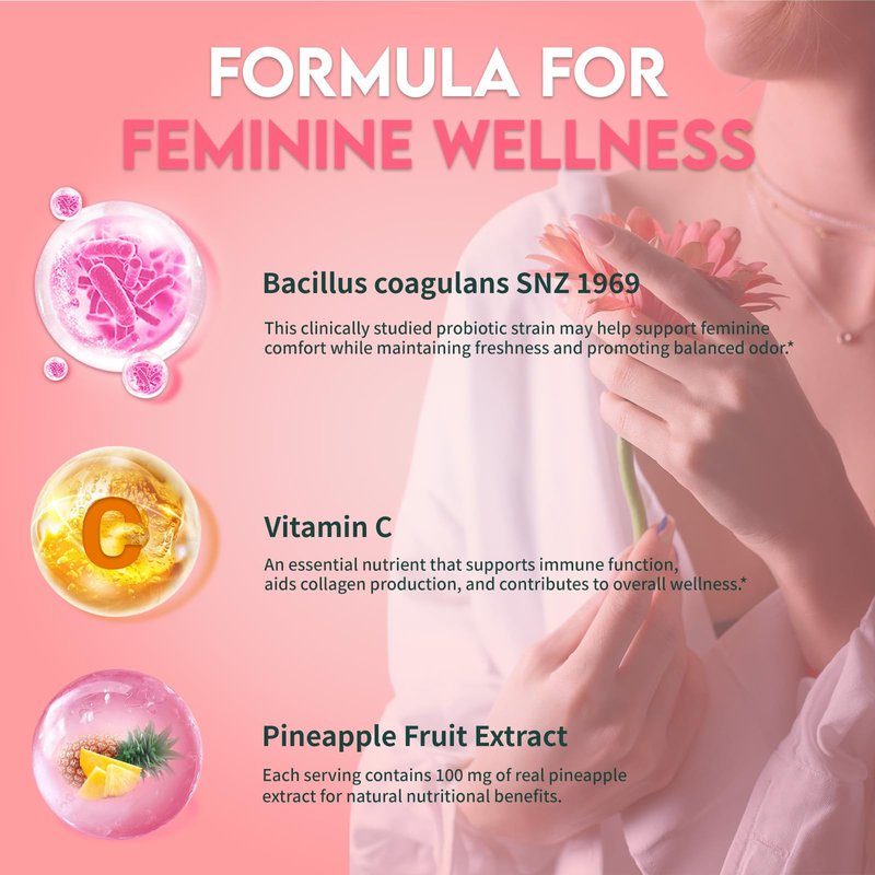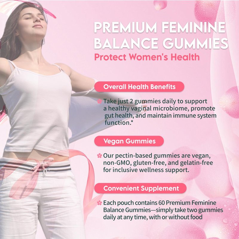 Premium Feminine Balance Gummies for Women – Pineapple Flavor – pH Balance, Immune & Digestive Support – Vegan, Gluten-Free – 60 Gummies (30-Day Supply)