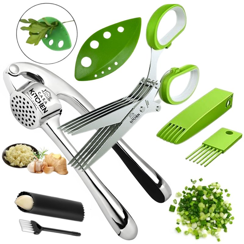 - ✅ EFFORTLESS GARLIC CLOVES & HERB PREP: Our premium garlic press and herb scissors set makes preparing garlic and herbs a breeze, whether you're a professional chef or a home cook.
