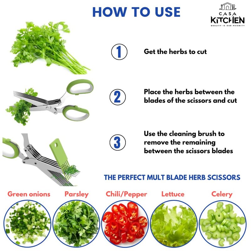 - ✅ BUILT TO LAST: Crafted from food-grade, rust-resistant materials, our garlic mincer is designed for durability and long-lasting performance. The 5 blade kitchen salad scissors stainless steel feature 5 sharp blades that stay rust-free even with extended use.