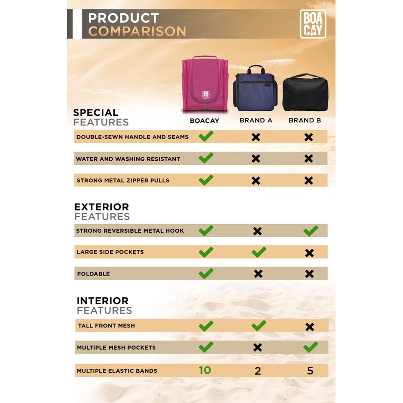 - A Perfect Gift for You or your Friends! If you are looking for an amazing gift idea that has that “extra-cool and innovative” Wow factor, then you will love the Boacay Travel Toiletry Bag. The Sleek design & colors are Suitable for any men or women, while the multifunctionality makes it an Essential accessory for an avid traveler. – Kindness is the Language!