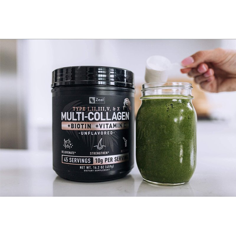- Pure Collagen Hydrolysate + Biotin + Vitamin C + Hyaluronic Acid - Zeal Naturals Multi Collagen Protein is the ultimate collagen supplement for women and men for not only joint support, but to support faster hair growth, stronger nails, and vibrant skin with the added vitamin C, biotin, and hyaluronic acid. Combine with multivitamin and pre/probiotic products to and help bring out your natural youth and beauty!*