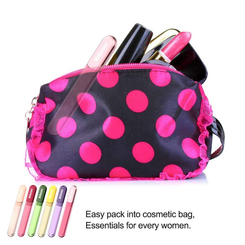 Metal buffer are good, but unfortunately, they tend to be heavy and they are sharp easy to broken your sunglass or other toiletries which put in your bag, also it would take away at airport when go traveling. On the contrary, the MiDenso nail file is only 5.5 inch length,30 Grams weight, it have a cover to protect the glass filer, so it will never damage your cosmetic and it won’t take away at airport. So next time you go travelling, you want to polishing nails, just take it from your handbag