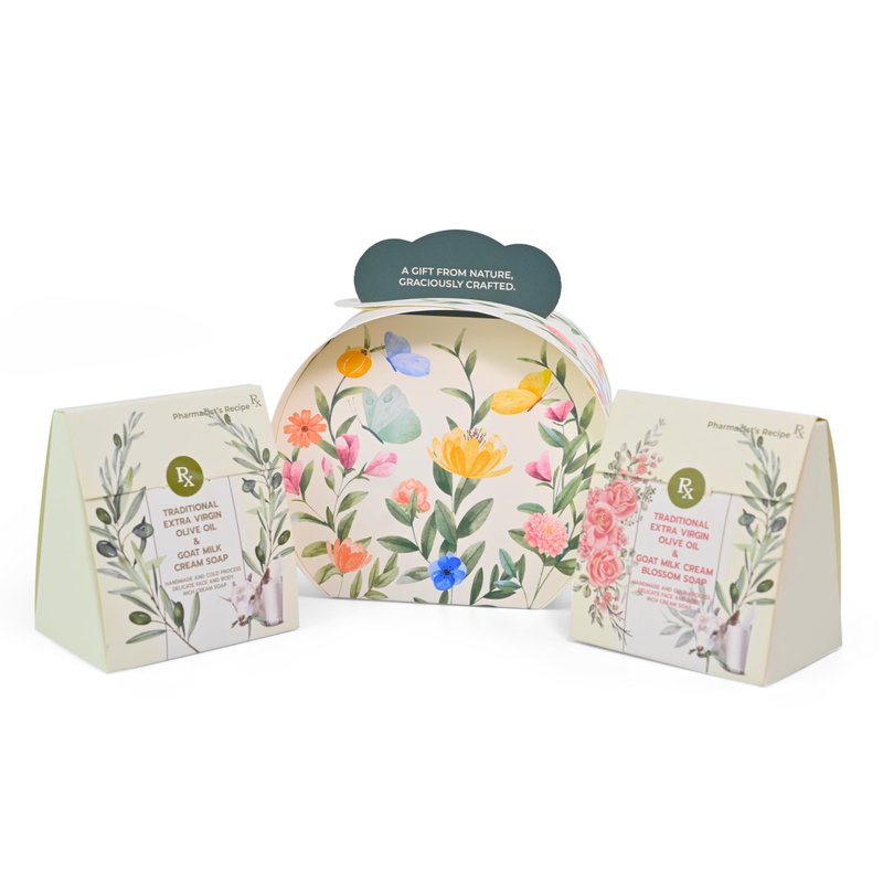 The soap is available in three delightful scents: Natural (Fragrance-Free) for those who prefer a minimalist approach, Orange Blossom for a light, floral touch, and Siam Roses & White Tea for an elegant, relaxing aroma. Our unique cold-process method incorporates condensed goat milk, creating a rich, elastic cream texture that lathers into a soft, smooth foam. This soap nourishes the skin while preserving the essential nutrients found in fresh olives and goat milk, making it perfect for daily facial cleansing.