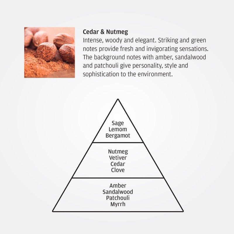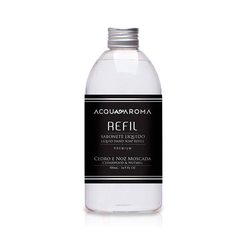 With its refined design and sophistication, this collection vaunts elegance and nobility. Premium Liquid Soap Refill Cedarwood & Nutmeg 16.9 FL OZ (500mL). Intense, woody and elegant. Striking and green notes provide fresh and invigorating sensations. The background notes of amber, sandalwood, and patchouli give personality, style, and sophistication to the environment.