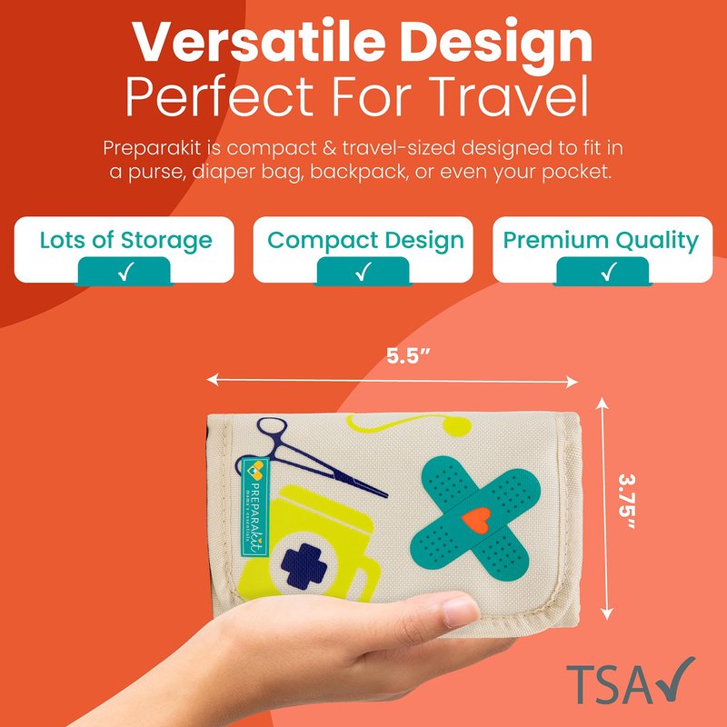 - TSA-Approved -- What good is a travel first aid kit that isn't TSA approved? That's why we designed our PreparaKit with travel in mind. Not only does it fit easily into a suitcase, carry-on, or purse, but everything in the kit meets TSA requirements.