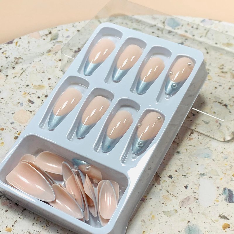 Remove the glue sticker and keep the fake nail tip for next time use.