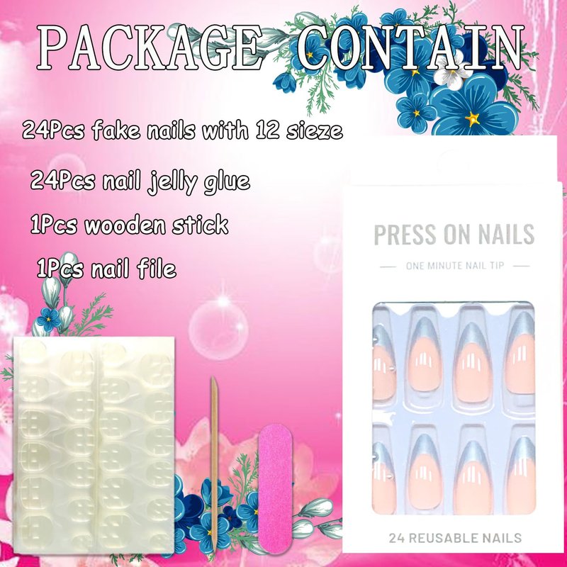 - Great Value: The package contains 24 pieces of french false nails of different sizes, 1 mini nail file, 1 small wooden stick, 1 piece of nail adhesive tabs, giving you plenty of nails to use for multiple occasions.