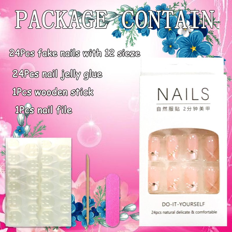 - Great Value: The package contains 24 pieces of medium square fake nails of different sizes, 1 mini nail file, 1 small wooden stick, 1 piece of nail glue sticker, giving you plenty of nails to use for multiple occasions.