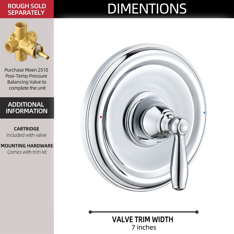 Pressure Balancing Tub and Shower Trim Kit, Compatible with Moen Posi-Temp Valve, Chrome