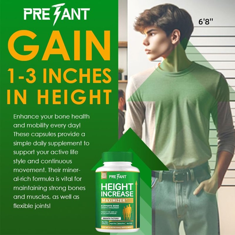 PRETANT-Growth Capsules to Grow Taller - Height Increase Maximizer with Calcium for Bone Strength -Natural Get Taller Supplement - Dietary Edible Healthcare Fitness