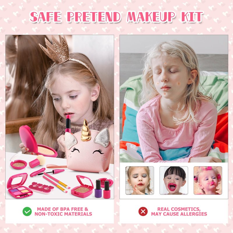 Pretend Makeup Kit for Toddlers Girls, Play Makeup Set for Kids 3-5, Unicorn Toy Purse with Fake Make up for Little Girls 4-6, Gifts for 3 4 5 6 7 8 Year Old