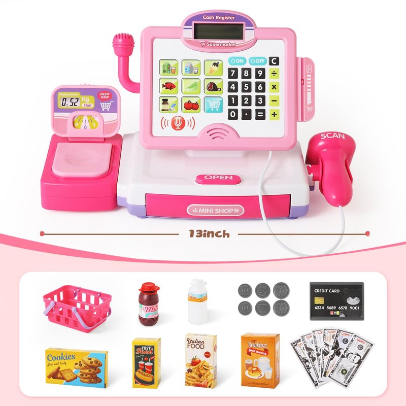 - Educational Resource for Learning- This cash register for kids 3+ years old is perfect for learning counting math and makes a deep impression. Kids could scan grocery toys and press number buttons like in a real supermarket, which gives a specific scenery to study addition, subtraction, and multiplication skills. It's also an ideal resource to learn life skills. Kids will know how to pay in a supermarket after they play with this toy set.