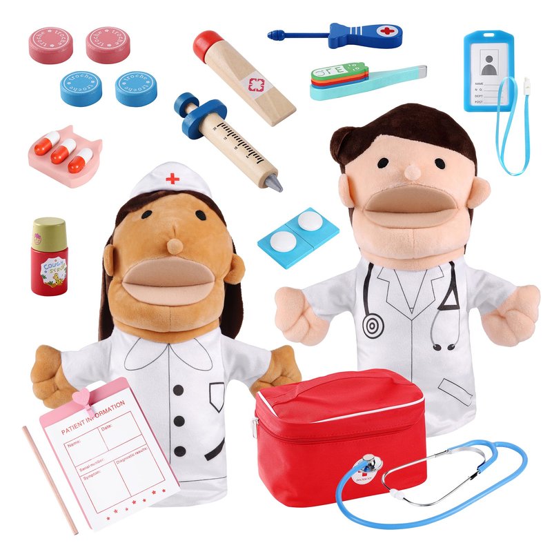 Pretend Toy Medical Kit with Doctor & Nurse Hand Puppets - Eases Fear for Kids, Educational Roleplay Toy for Toddlers & 3+ Toys for Girls Boys, Pretend Playset, Kids Doctor Set