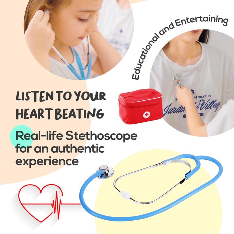 - Educational & Imaginative: Real-life Stethoscope: Listen to your heartbeat with our functional Stethoscope for an authentic experience, designed for children over 3 years old, this playset facilitates a multifaceted learning environment where kids can immerse themselves in various medical roles, developing empathy, care, and understanding of the medical world from an early age through play and interaction