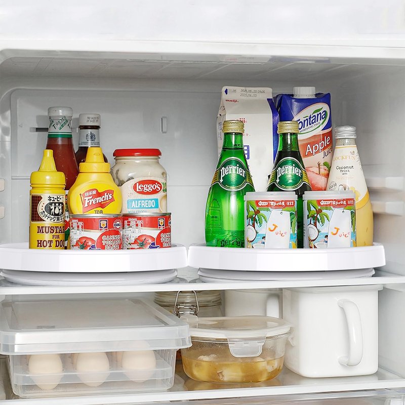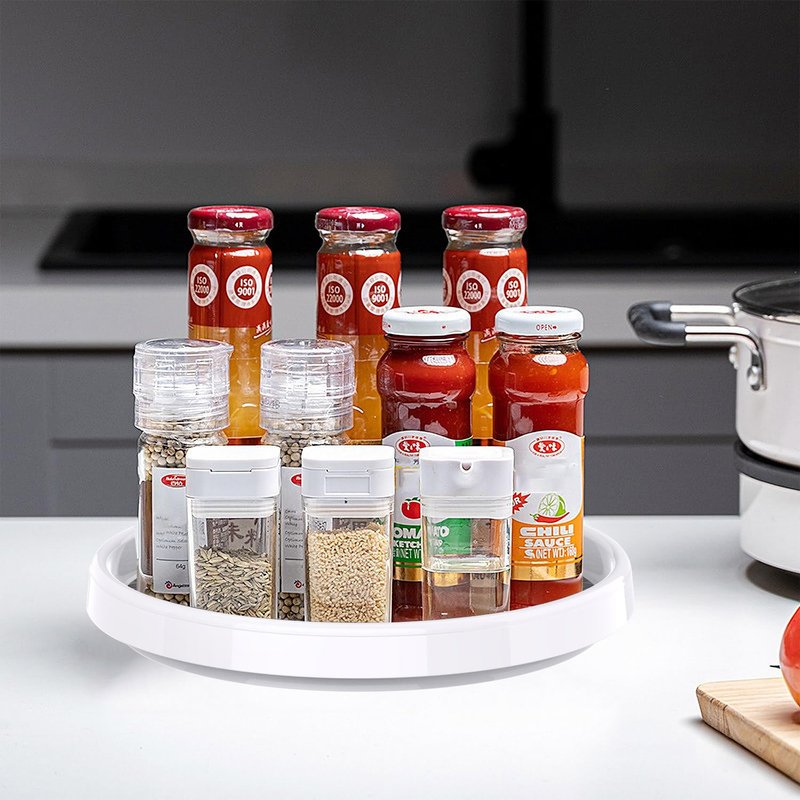 The lazy susan organizer provides organized, easy-access to hard-to-reach items. Turntables are outfitted with a Non-Skid liner, ensuring that items stay in place while spinning. The organizer features non-slip lining to keep items in their place and a wide base to ensure stability. Great for putting on table-tops, in fridges, in cabinets,bath room, laundry room,office home to help store and organize food items. Nice product for home storage