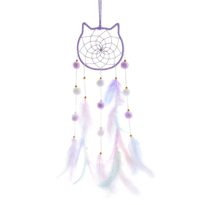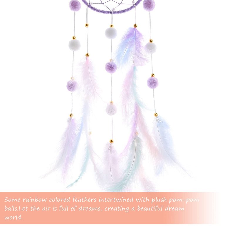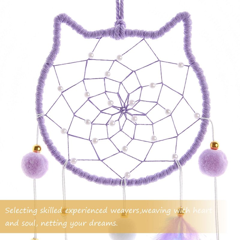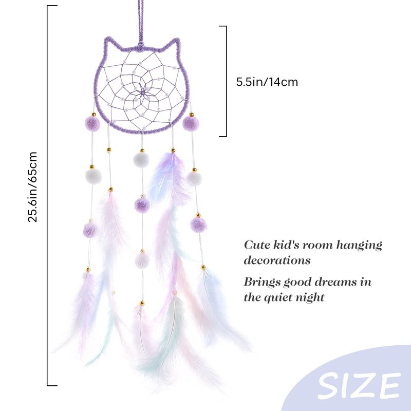 - 💗【Natural Material】:The hanging purple cat kids dream catcher is made of the fumigation feather,pom pom balls and thread handmade crochet net.Fully assembled.No DIY Required