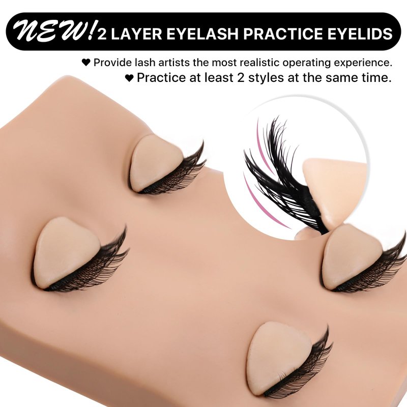 - Upgraded Replacement Practice Eyelids: Compared to the old eyelash mannequin head, this upgraded eyelash mannequin head features 2-layer lashes instead of single layer lashes, with more lash volume, beginners can practice more different lash extensions on double layer lashes