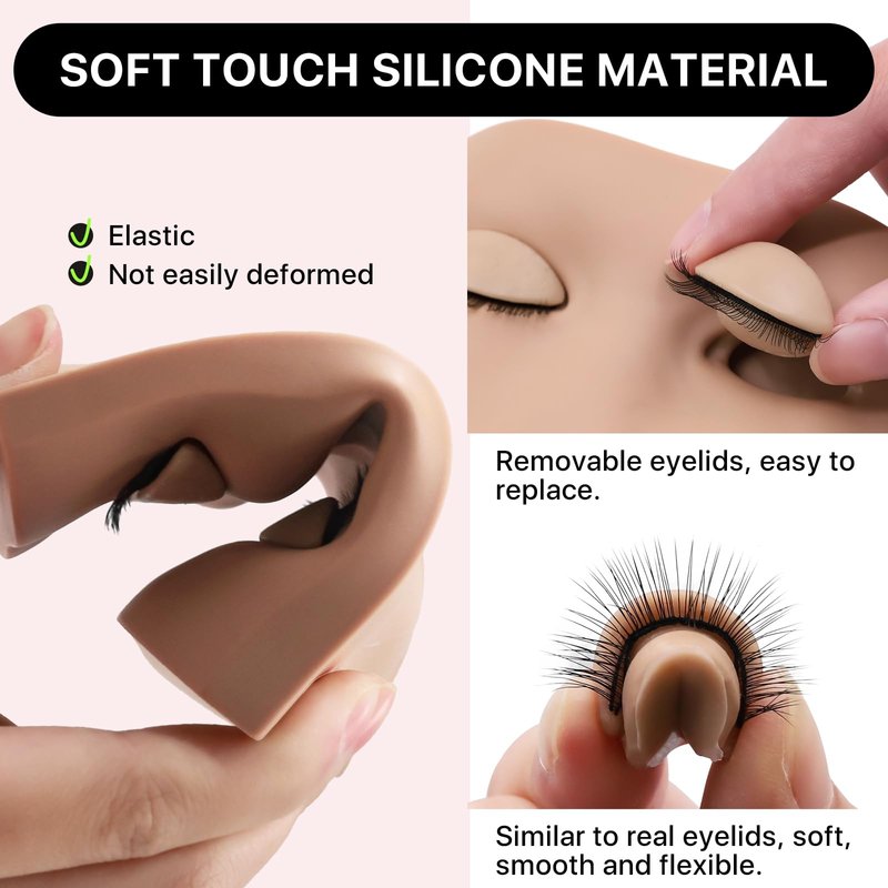 - Similar to Real Eyelids: Designed with 3D effect, similar to natural eyelids shape, giving lash artists a more realistic operating environment. With 2 pairs of removable eyelids, you can replace them directly when they are dirty, enough for you to apply and practice eyelash extensions