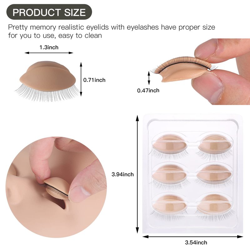 - What’s in the Box: There are 3 pairs of realistic replacement eyelids for lash practice. Made of soft silicone rubber, these eyelids provide you with a real skin touch, smooth and safe without strange smell. Used with lash mannequin head - sold separately.
