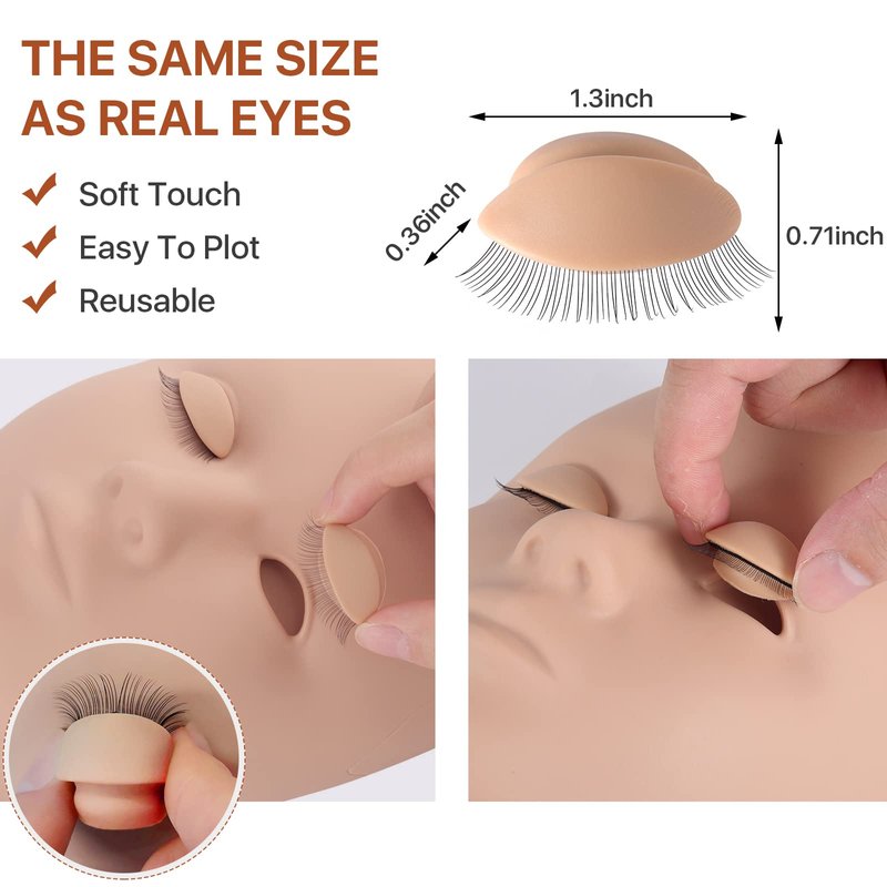 With 3 Pairs Removable Training Eyes, It can be replaced directly while it is dirty, replaced training eyes can help you practice the placement of different types of eyelashes extensions at the same time. You can replace the eyelids for three times.