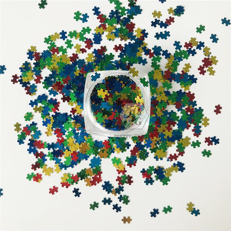 PrettyG 10 Grams/Pack - Red Green Blue Yellow Color Mixes Puzzle Shape Glitter Sequins - Festival Rave Beauty Makeup Face Body Nail Art Decoration BP-Puzzle