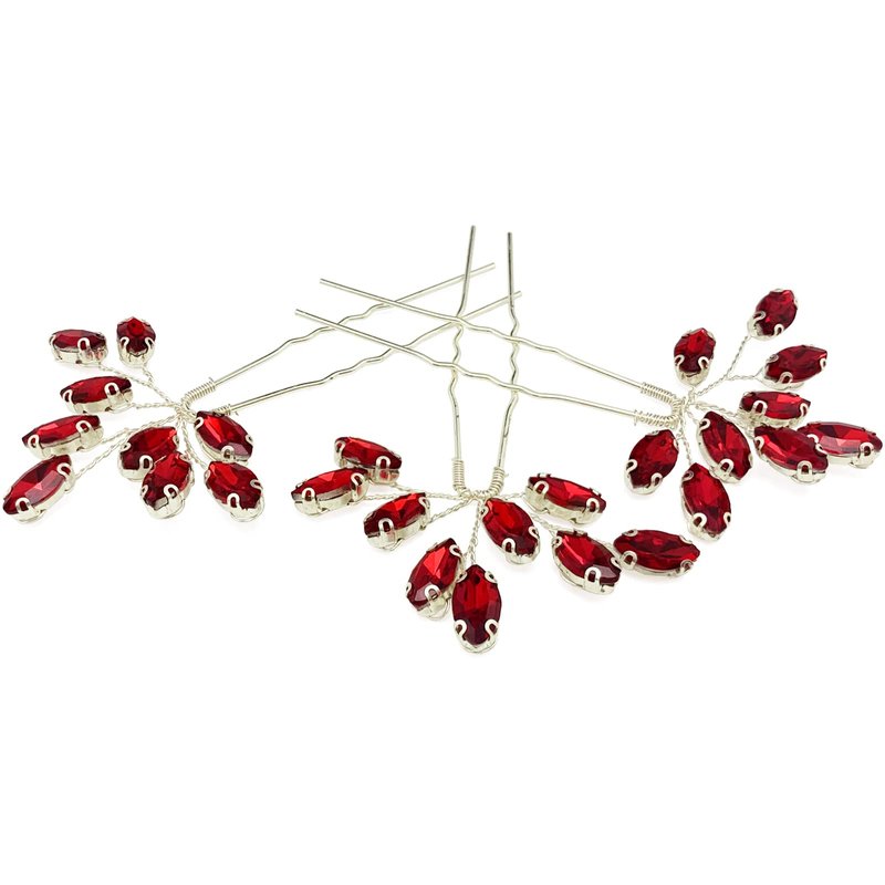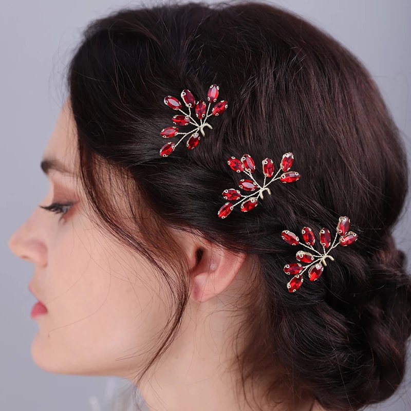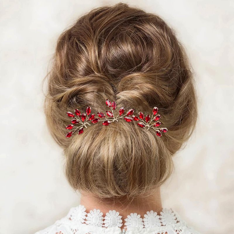 PRETTYLIFE Flexible Vine Green or Wine Red Crystal Hair Pins for Wedding Brides and Bridesmaids