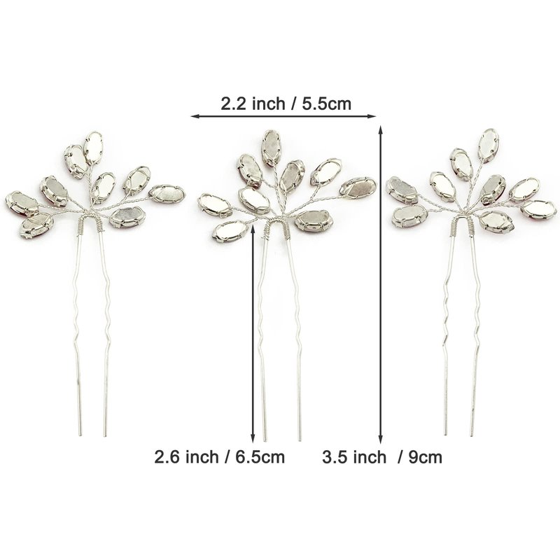 - 【Size】 Each wedding crystal hair piece is with size 2.2" x 3.5" (Width x Height), the length of the U-shaped pins is approx. 2.6", with curves texture can hold in the hair firmly, free size for women and girls