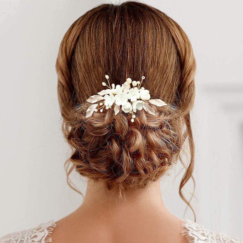 - 【Material】 The white wedding hair side comb is made of quality alloy wire, ceramic flowers, faux pearls and metal leaves, delicate and elegant, easy to wear and not easy to fade