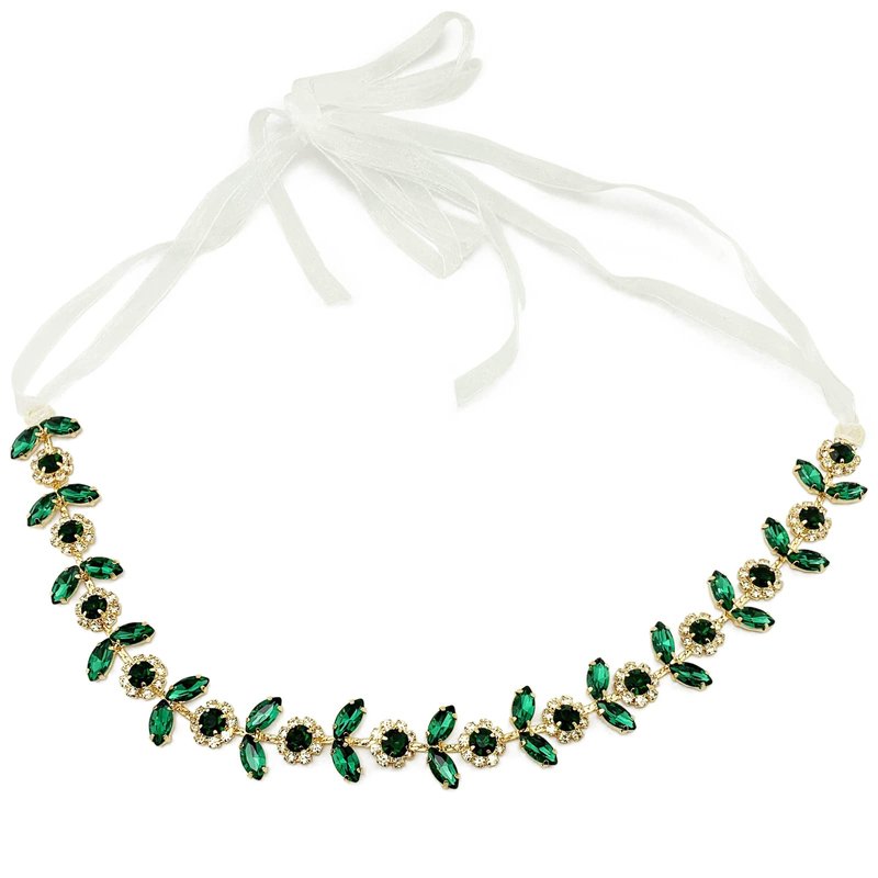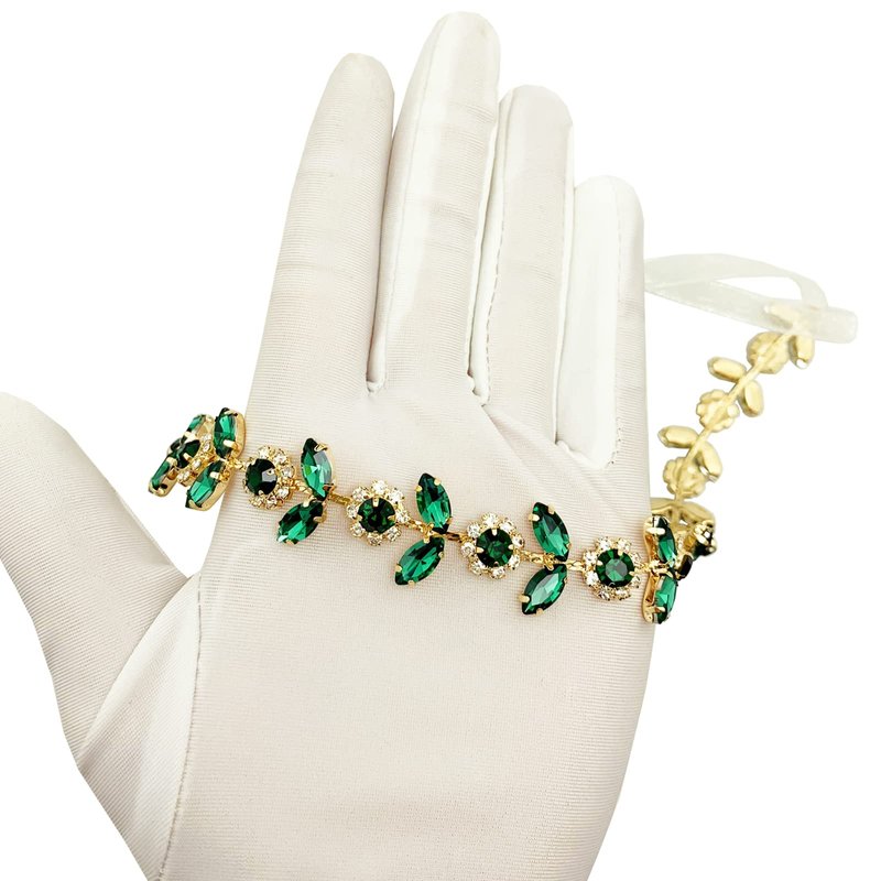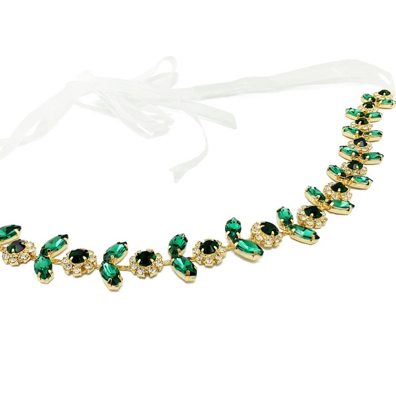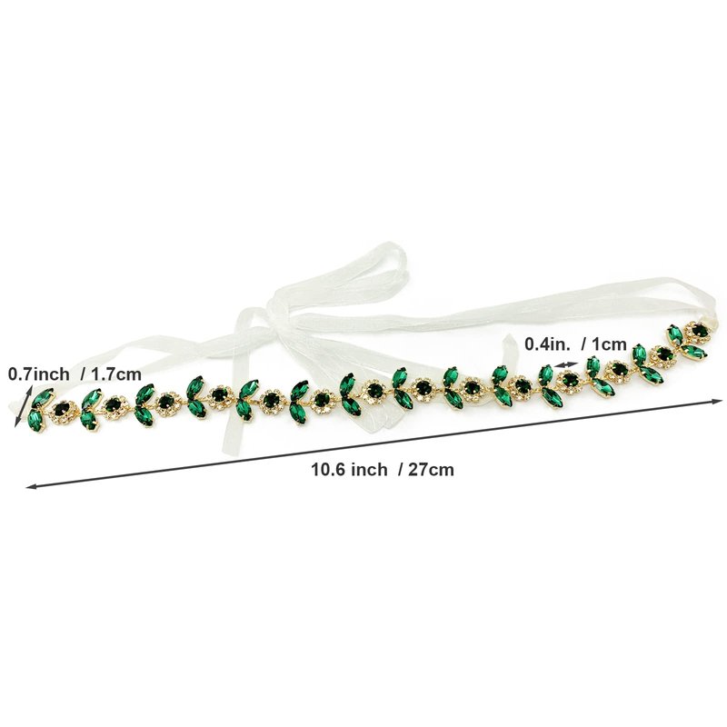 - 【Glamorous Design】 The wedding headpiece is designed with clear & emerald and dark green claw rhinestone at gold color alloy base and chain, end with loop for fixing with ribbon (included) or hair pins (not included), shiny and add sparkle to your hairstyle and good assistant for DIY your own hairstyle