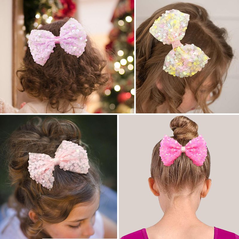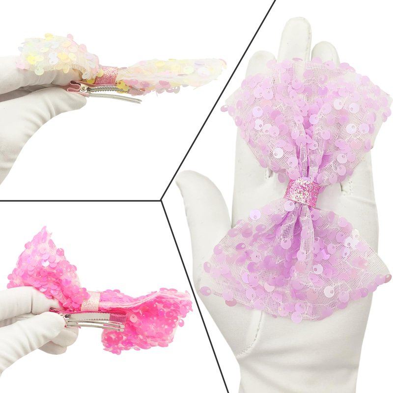 - 【Design】 The shiny sequin bow is hand glued by glitter fabric center to half lined alligator clip, lovely and add sparkle to your girl's hairstyle