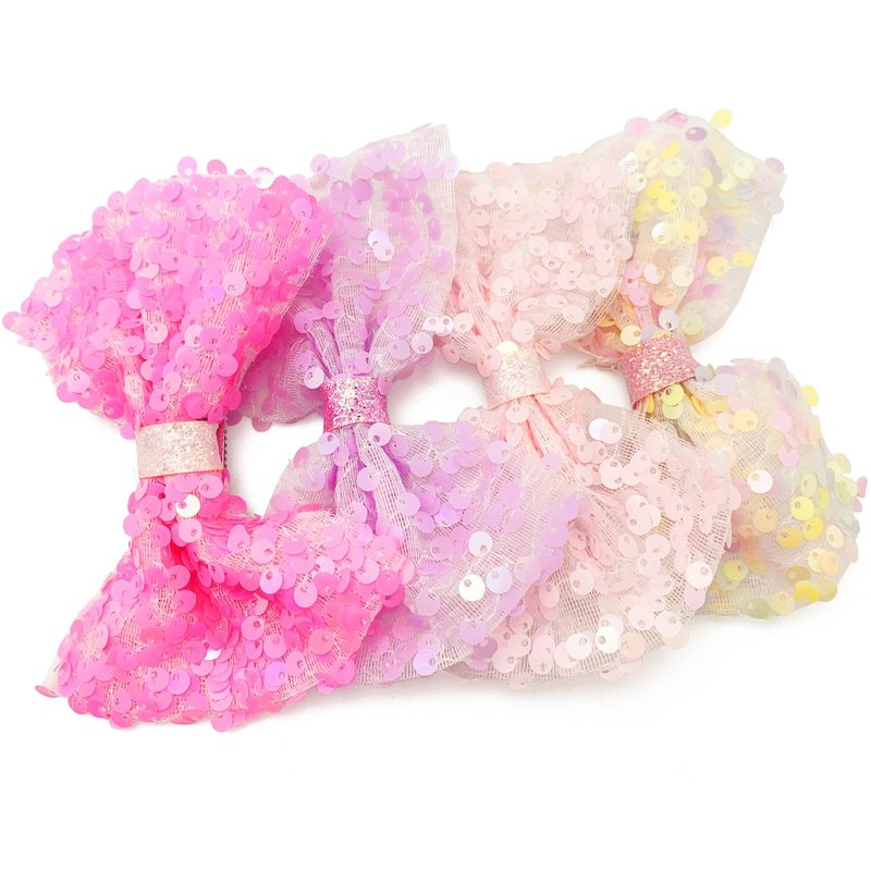 PRETTYLIFE Pink Style Shiny Sequins Hair Bows with Alligator Clips for Flower Girls and Teens