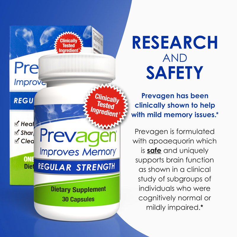 Prevagen. Healthier Brain. Better Life. Prevagen (pron. 'prev-uh-gin') is a dietary supplement that has been clinically shown to help with mild memory loss.* Prevagen is formulated with apoaequorin (pron. 'a-po-ah-kwor-in'), which safely and uniquely supports brain function. Apoaequorin was originally discovered in a jellyfish and is patented by Quincy Bioscience for use in a variety of products to support cognitive function.* In a computer-assessed, double-blind, placebo-controlled study, Prevagen improved certain aspects of cognitive function over a 90 day period in individuals who were cognitively normal or mildly impaired.* Prevagen first became available to consumers in 2007. Since then, over one million people have tried Prevagen and it is the number one recommended memory support brand according to 2019-2020, 2020-2021 and 2021-2022 Pharmacy times national survey of pharmacists. Prevagen is recommended to be taken once daily, in the morning with or without food. It is very safe and well tolerated. Use of Prevagen for 90 days is recommended to fully gauge Prevagen's effectiveness. You can continue to take your vitamin and mineral supplements with Prevagen. Prevagen works unlike any other supplement to help support the brain.* Prevagen works in a complementary way to other vitamins and mineral supplements. It is not meant to replace your current supplement regiment. * These statements have not been evaluated by the Food and Drug Administration. This product is not intended to diagnose, treat, cure or prevent any disease.
