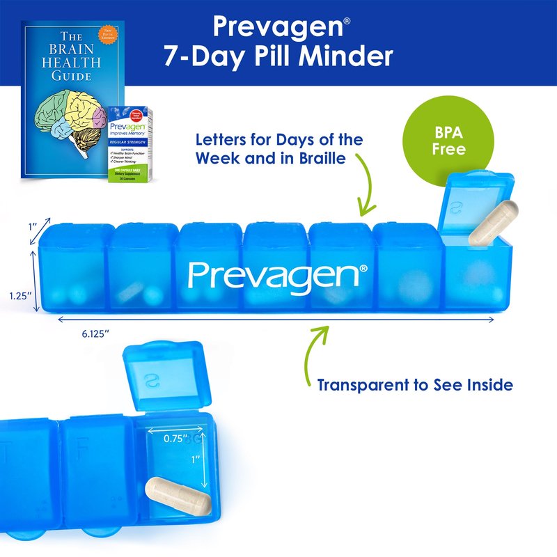 - Includes a Prevagen 7-day Pill Minder to help you stay organized. BPA free, letters & braille for days of the week