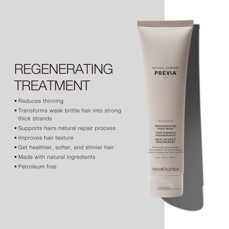 - π¨ππ§ππ ππ§π π¦π’ππ¨π§ππ’π‘ ππ’π₯ πππ ππππ ππππ₯: PREVIA Reconstruct Regenerating Conditioner is an advanced Italian hair care treatment that replenishes moisture and repairs brittle strands. It regenerates hair structure, preventing future damage while restoring your hairβs natural health and shine.