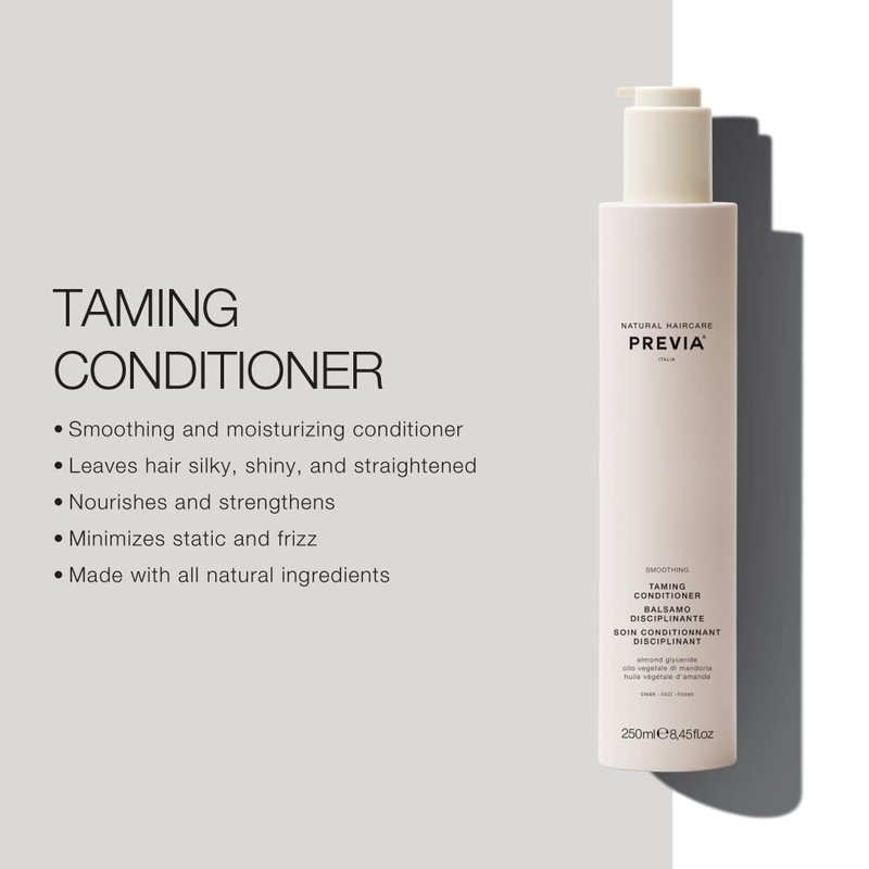 - π¨ππ§ππ ππ§π π¦π’ππ¨π§ππ’π‘ ππ’π₯ ππ₯ππππ¬ ππππ₯: PREVIA Smoothing Taming Conditioner is the ultimate solution for frizzy hair. This advanced Italian hair care product deeply hydrates, reduces frizz and static, and helps detangle and soften hair for smooth and manageable results.