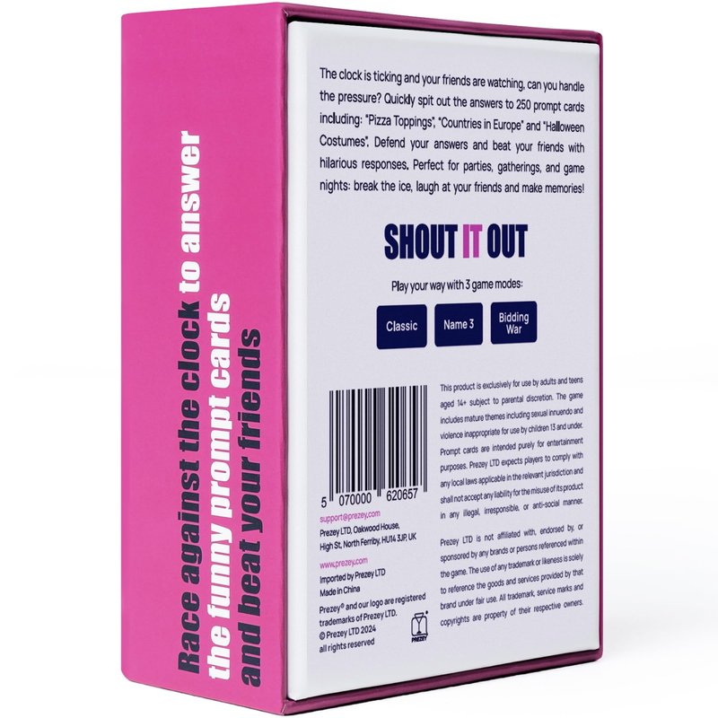 - QUICK & EASY - Just shuffle the cards and start playing. Shout it Out is easy to understand, set-up and play.