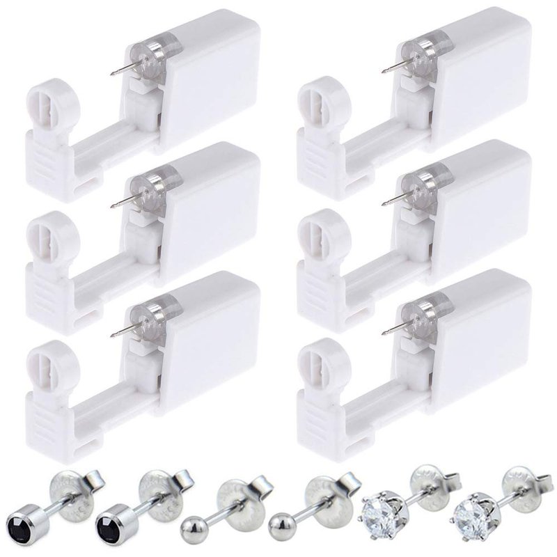 prgislew Ear Piercing Gun - Silmy 6 Pack Ear Piercing Kit Disposable Self Ear Piercing Gun with Ear Stud and Clean Tool Pierce Kit Tool for Nose Studs Cartilage Tragus Helix Piercing Gun