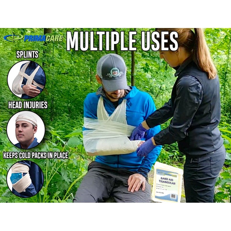 - 𝐌𝐄𝐃𝐈𝐂𝐀𝐋 𝐔𝐒𝐄: The triangular bandage can be used as a sling, for a head injury, ankle sprain, tourniquet, shoulder injury, bleeding wound, a splint to fracture, minor hand burn, hip wrap, and much more