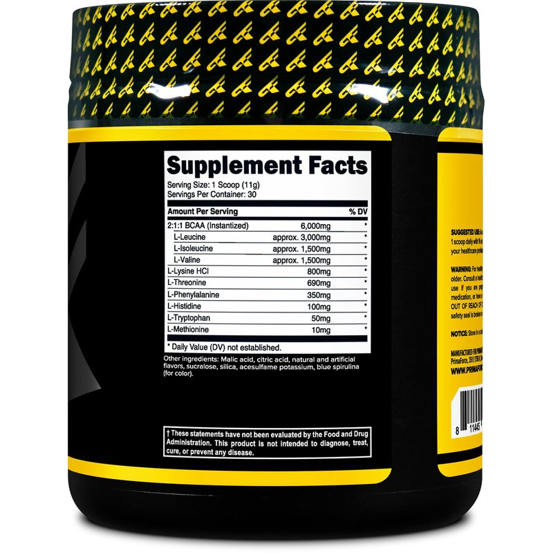 PrimaForce Essential Amino Acids (EAAs) have 8 grams EAA per serving and includes L-Leucine, L-Lysine HCl, L-Isoleucine, L-Valine, L-Theonine, L-Phenylalanine, L-Histidine, L-Tryptophan and L-Methionine. Each bottle includes 30 servings.