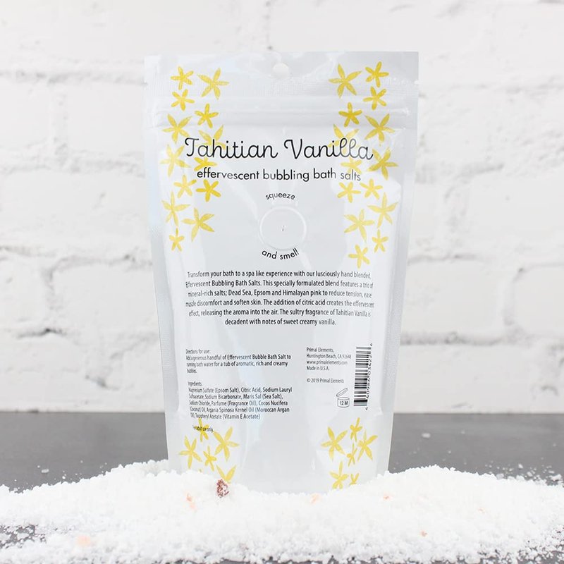 Primal Elements Detoxifying Sea Salt Soak, Bubbling Aromatherapy Salts, Tahitian Vanilla, 12 oz Resealable Bag