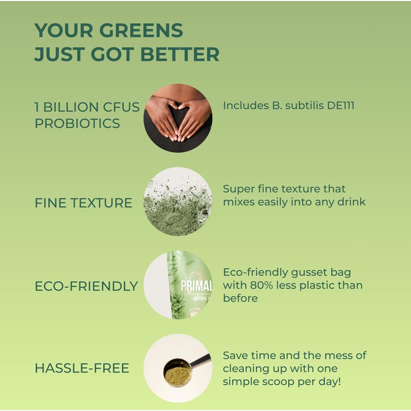- Instant-Mixing Formula: Effortlessly add Primal greens into everyday drinks and recipes thanks to the fine texture, for a blend of vitamins and minerals that are easy to add to every routine