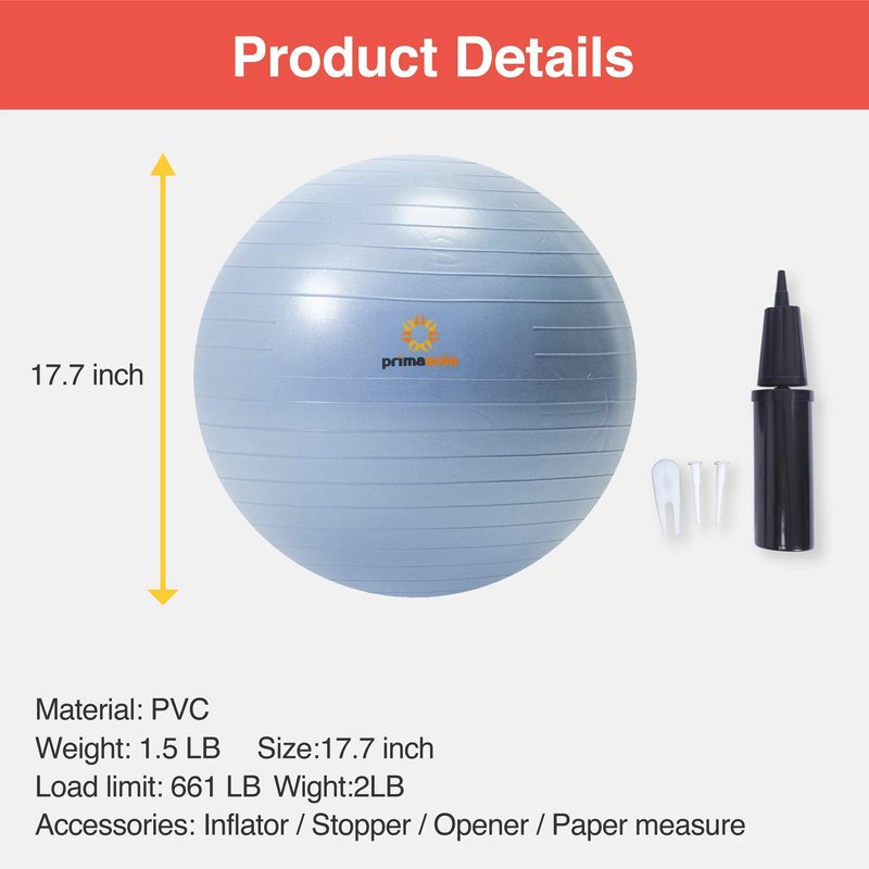 PRIMASOLE Exercise Ball for Balance Stability Fitness Workout Yoga Pilates at Home Office & Gym 45cm Pale Gray